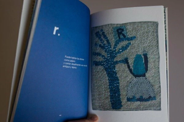 Mariana Robles lee, escribe, dibuja, borda… Su práctica artística viaja entre expresiones diversas, va de una forma poética a otra, de una materia a otra. La lectura de un texto, por ejemplo, -ficción, pensamiento filosófico, teatro o poesía- puede ser la génesis de una escena que representa mediante el bordado. O a la inversa, la materia visual se derrama hacia la palabra, se conjuga con el verbo de una imaginación poderosa y compleja. O también, a veces, la poesía enhebra los hilos que crean las figuras representadas; se despliega en una mise-en-scène visual otorgándonos la materia prima del poema, así anda el lenguaje en este libro. En el trabajo de Mariana, las lógicas del quehacer artístico no están ceñidas a temáticas fijas, a codificaciones específicas o, incluso, a prescripciones técnicas. Deambulan, más bien huyendo de una única idea, entre la imaginación, la memoria autobiográfica, la apropiación de teoría, narrativa o poesía, iluminadas siempre por la pulsión de una práctica indetenible. En las imágenes, visuales y literarias, no hay tristeza ni oscuridad. El trauma, la locura, la melancolía encuentran conjuro en las escenas, y se entretejen con el afecto y la fortaleza de las mujeres.