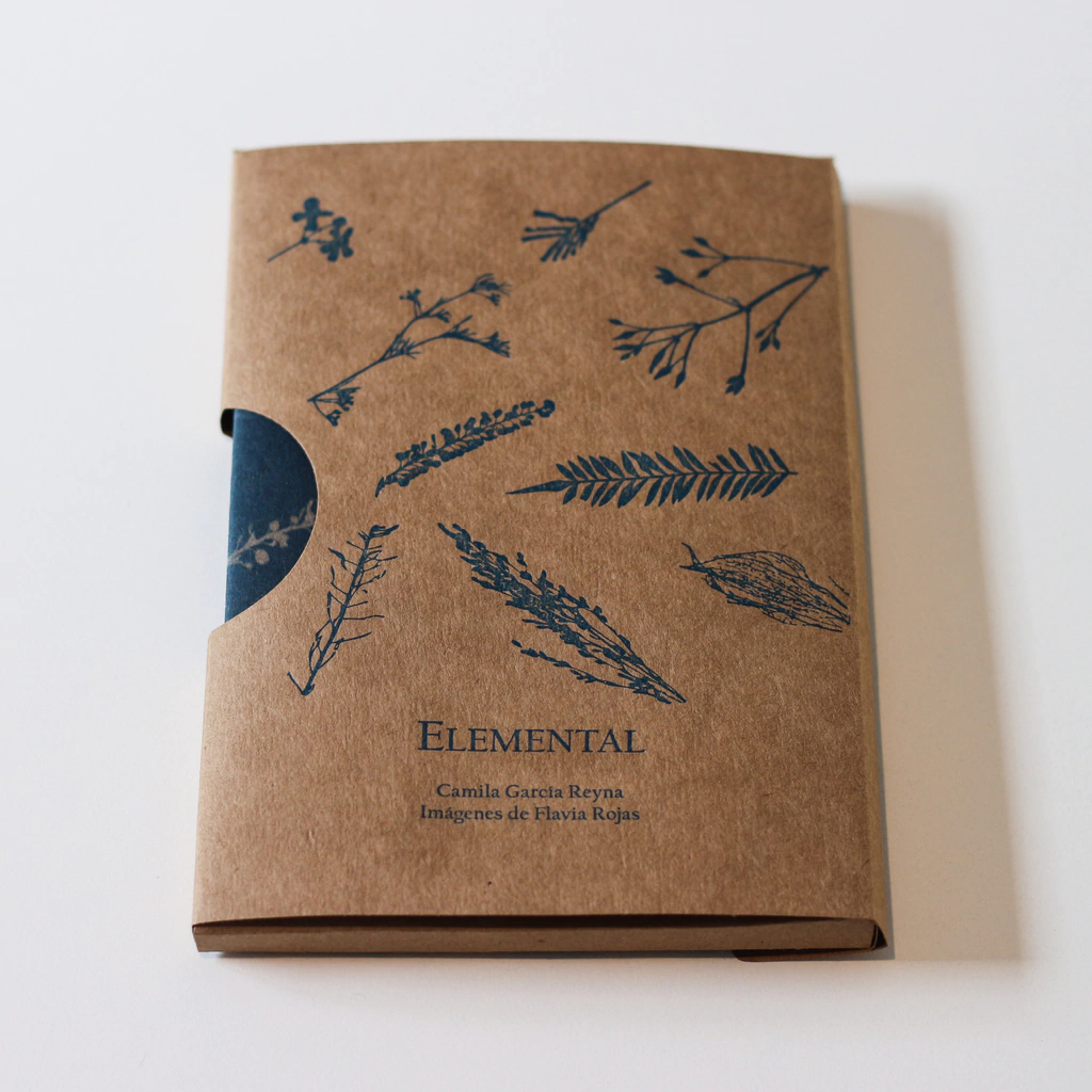Una caja con cuatro cuadernos de poemas elementales: de fuego, de agua, de tierra y de aire. Cada uno, invocando un elemento propio a partir del encuentro de las palabras de Camila García Reyna y las imágenes de Flavia Rojas, reveladas con la técnica de cianotipia. La tapa se imprimió con la técnica letterpress y el interior de los 4 cuadernos se imprimió en offset a una sola tinta azul. Esta edición recibió el Premio Alberto Burnichon al libro mejor editado en Córdoba, en el marco de la Feria del Libro Córdoba 2020-2021