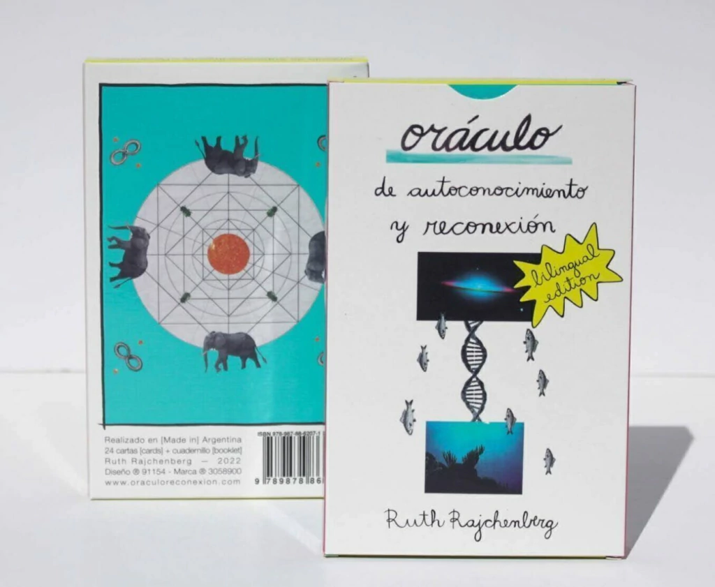 El Oráculo de Autoconocimiento y Reconexión es un mazo de cartas compuesto por 24 obras de arte que forman un sistema visual simbólico. Es un objeto artístico terapéutico, desarrollado a partir de imágenes y conceptos entrelazados.